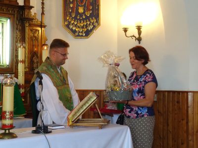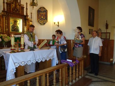 W ostatnią niedzielę sierpnia wszyscy zgromadzeni na mszy świętej w Kaplicy w Grodkowicach, pożegnali odchodzącego z naszej parafii Księdza Wikarego. Wierni z Grodkowic i Łysokań, Rada Sołecka Grodkowic, rodzice oraz uczniowie SP w Grodkowicach, podziękowali za wspólne dwa lata modlitwy i nauki. Ksiądz Marcin żegnając się ze zgromadzonymi, przekazał dla potrzeb Kaplicy ornat i Lekcjonarz, który zawiera teksty dotyczące uroczystości, świąt i wspomnienia: Najświętszej Maryi Panny i świętych – Apostołów, męczenników, pasterzy, Doktorów Kościoła i dziewic.