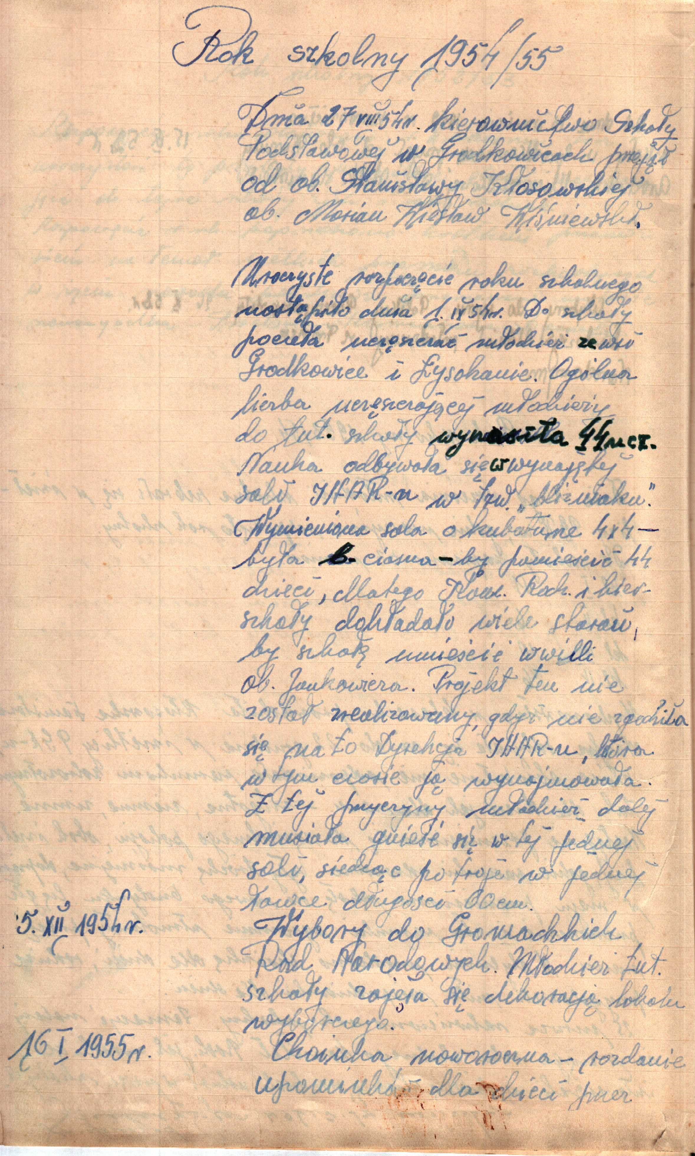 Nic się nie dało zmienić. Umowę podpisał. Zatem szkołę przejąć od dotychczasowej kierowniczki musiał. Wrzesień 54 za progiem już stał. I nowy rok szkolny trzeba było zacząć.(...) Szkoła była w rękach zakonnic do 1948 roku. Potem władze świeckie odebrały zakonnicom prawo nauczania. Nauka przeszła w ręce świeckie. Nikt nie pomyślał o tym, że we wsi nie ma budynku szkolnego. Bo siostry z klas szkolnych zrobiły kaplicę, konsekrowały i w ten sposób obiekt stał się własnością kościelną. (…) Parcelację majątku zrobiono. Powstał tak zwany IHAR czyli Instytut Hodowli i Aklimatyzacji Roślin. Oddany pod opiekę Wyższej Szkole Rolniczej w Krakowie. Miał kontynuować tę sama działalność, którą przed wojną zajmowali się Żeleńscy. Nadziały otrzymali też miejscowi gospodarze. Wydzielono też parcelę pod budowę szkoły. Tyle, że parcela w takim kształcie na szkołę się nie nadawała. Długa, ale za wąska. Należało dokonać wymiany. Parcelę wzięła w niby tymczasową dzierżawę kobieta z tej wsi, ale mieszkająca w Krakowie. I w takim momencie na scenie pojawił się Wiesiek. Wieś była, a szkoły właściwie nie. Kilka salek w kilku wynajętych miejscach. Ot cała szkoła!