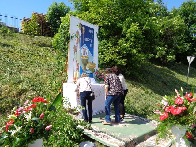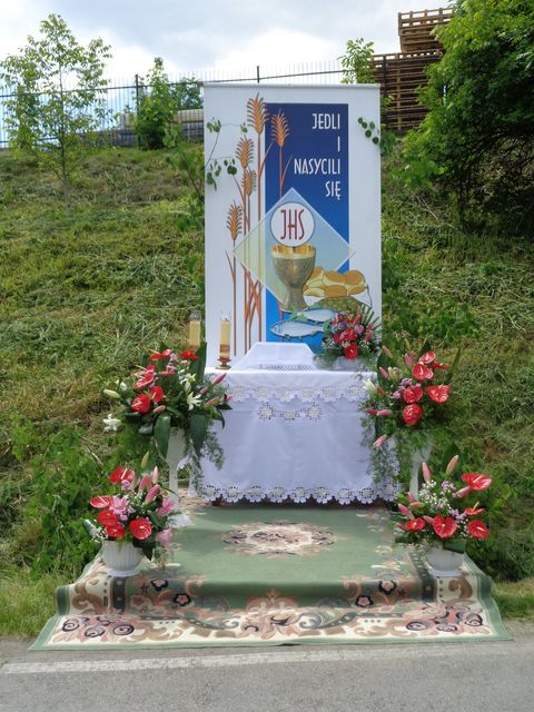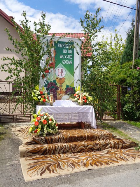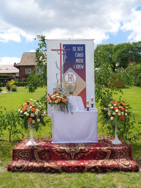 Biorąc udział w procesji Bożego Ciała mogliśmy modlić się przy czterech ołtarzach wykonanych przez mieszkańców wyznaczonych wiosek naszej parafii. Wśród nich był również ołtarz wykonany przez panią Sołtys i przedstawicieli Rady Sołeckiej.